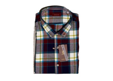 Camisa manga larga franela hombre talla grande cuadros con bolsillo 23751