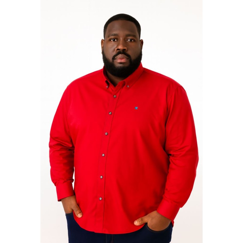 Camisa manga larga tallas grandes de popelín elástico sin bolsillo Lagos. Tallaje largo