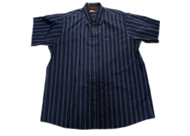 Camisa manga corta tallas grandes popelín a rayas con bolsillo V2602 (Tallaje largo)