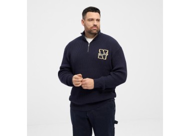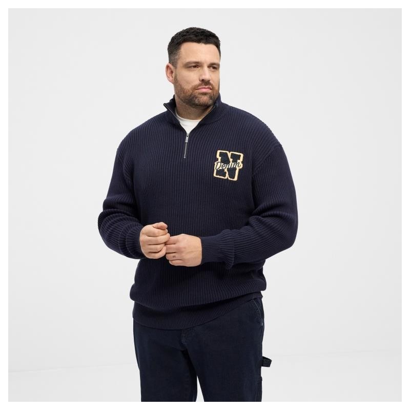 Jersey cuello perkins tallas grandes con media cremallera, de punto inglés con bordado North 53336. Tallaje grande